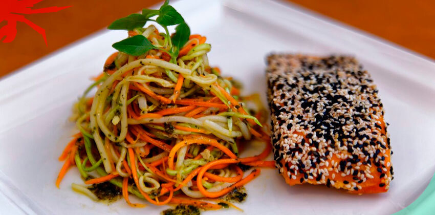 Для начала размораживаем рыбу: перекладываем с морозильной камеры на полку холодильника на бумажное полотенце. Затем промываем под водой, даем обсохнуть, солим и перчим со всех сторон. Затем обваливаем в кунжуте.