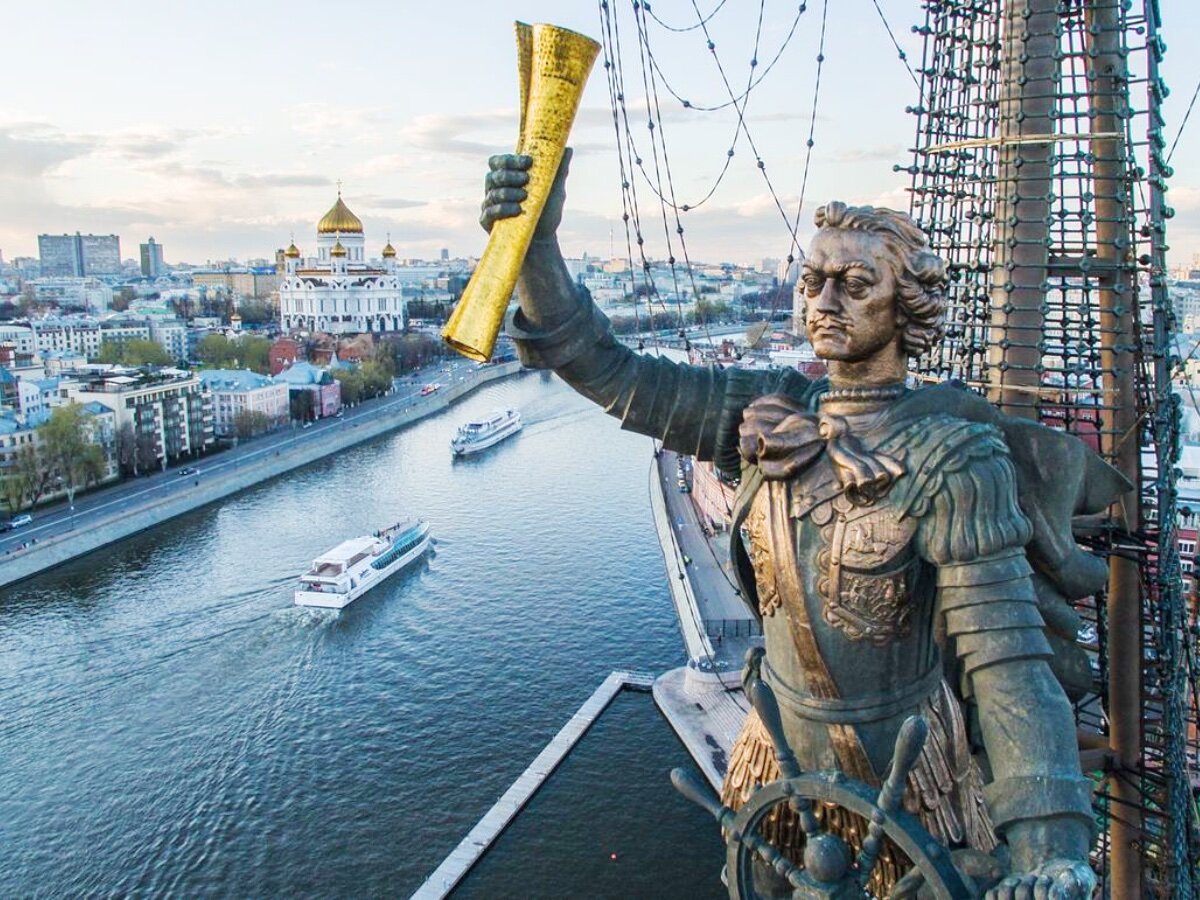Скульптура Петра I работы Церетели — один из самых известных, самых высоких и, вероятно, самых скандальных российских памятников. Хотя бы потому, что говорили, что это и не Пётр вовсе, а никому не пригодившийся Колумб. Сам памятник Петру Первому в Москве, в районе Берсеневской набережной, появился (официально открыт) 5 сентября 1997 года. Официальное название памятника — «В ознаменование 300-летия российского флота». Общая высота композиции — 98 метров, а фигуры самого Петра I — 18 метров. Установлен памятник Петру на искусственном насыпном острове на разделе Москвы-реки и Водоотводного канала и торжественно открыт в рамках празднования 850-летия Москвы. Споры вокруг новой скульптуры начались фактически сразу после её установки. Критиковали как место расположения, так и внешний вид — непропорциональность фигуры царя, исторические несоответствия композиции — не мог Петр I ходить на каравелле и носить доспехи. Говорили даже, что памятник — якобы переделанная статуя Колумба. Которую, мо