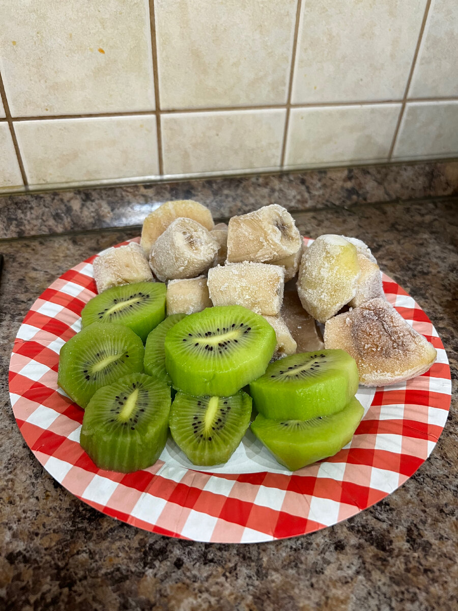 Смузи - это прекрасный способ получить полезные витамины, микроэлементы и антиоксиданты в одном стакане. Одним из самых популярных и полезных сочетаний для смузи является киви, банан и яблоко. Лично я замораживаю фрукты, это особенно актуально летом, холодный смузи отлично освежает, и является хорошей альтернативой мороженому из магазина. Например, сегодня, я решила приготовить смузи из свежих киви, и замороженного яблока и банана, с добавлением семян чиа и дополнительной порции клетчатки. Рецепт очень простой, для него нам понадобится: -Киви 2шт -Банан 1шт -Яблоко 2шт -Семена Чиа -Порция клетчатки 10гр Пропорции могут быть другие, Вы можете добавить больше яблок и других фруктов, здесь всё на ваше усмотрение. Мы нарезаем все фрукты на кусочки, предварительно их очистив от кожуры. Взбиваем всё блендером и добавляем в конце семена Чиа и клетчатку, чтобы наш коктейль дал нам еще больше пользы Киви, банан и яблоко - это фрукты, богатые витаминами C, A, E и K. Витамин С является