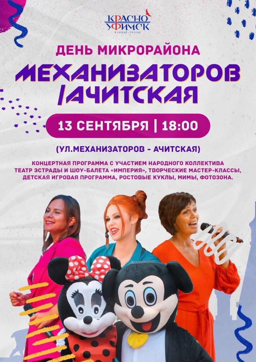 Публикуем программу городских мероприятий на ближайшие дни. Возможны изменения и дополнения. 13 сентября 18.00 — день микрорайона ул. Механизаторов/Ачитская (3+); 19.00 — день микрорайона «Центральный» (корт на Манчажской, 34, 3+). 14 сентября, 18.00 — день микрорайона Соболя (площадь у КМТ на ул. Ремесленной, 3+). 15 сентября 16.00 — фестиваль современной молодежной культуры «Джем», посвященный областному Дню трезвости (сквер возле администрации, 6+); 18.00 — развлекательная шоу-программа «Жаркая осень» (сквер у администрации, 6+); 18.00 — день микрорайона Бараба (хоккейный корт на ул. Терешковой, 3+). 16 сентября 10.45 — «Кросс нации-2023» (центральная площадь, 3+); 18.00 — день микрорайона «Железнодорожный» (МЦ «Космос», 3+). 17 сентября, 18.00 — день микрорайона «Новый Поселок» (3+).