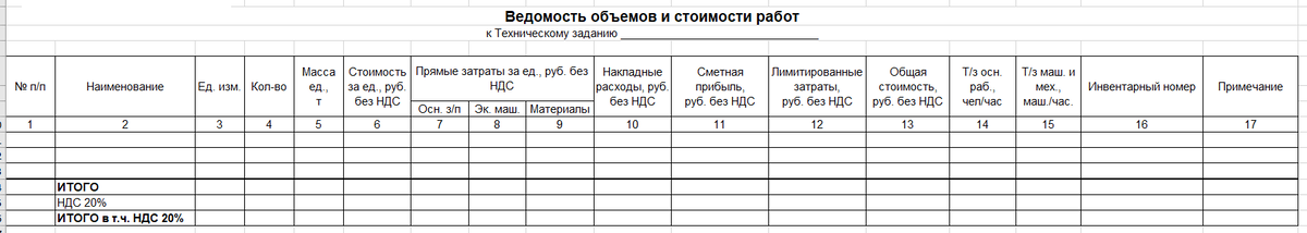 Все остальные графы заполняют сметчики и мы их добавим только в шаблоне спецификации.