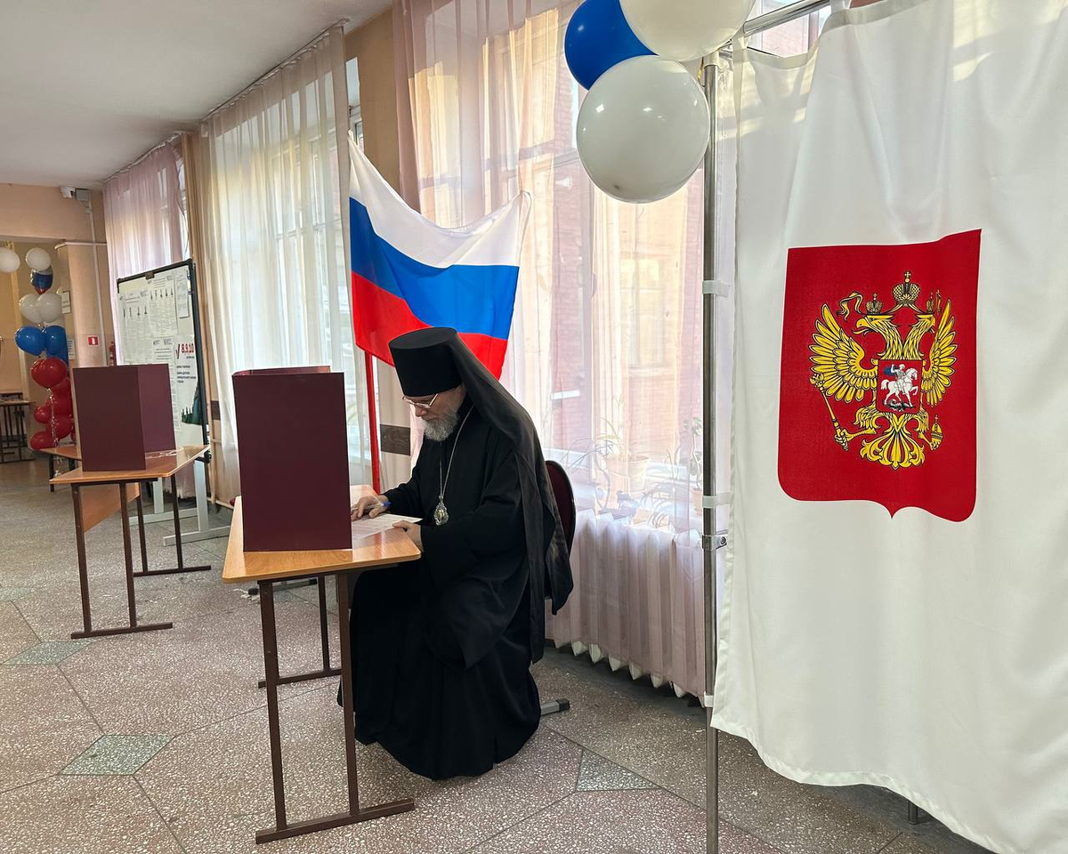 Владыка Владимир проголосовал на избирательном участке г. Новокузнецка по месту прописки.