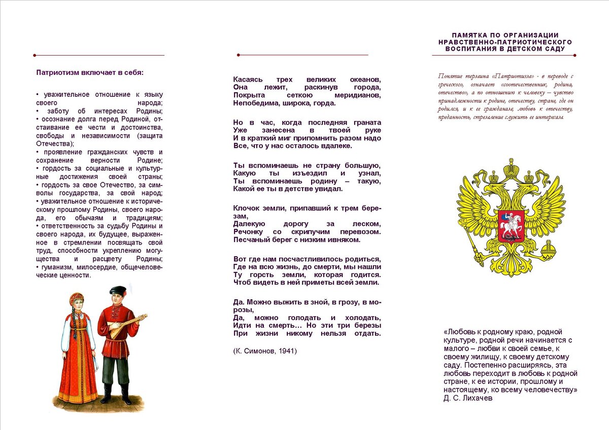 ПАМЯТКА ПО ОРГАНИЗАЦИИ НРАВСТВЕННО-ПАТРИОТИЧЕСКОГО ВОСПИТАНИЯ В ДЕТСКОМ САДУ