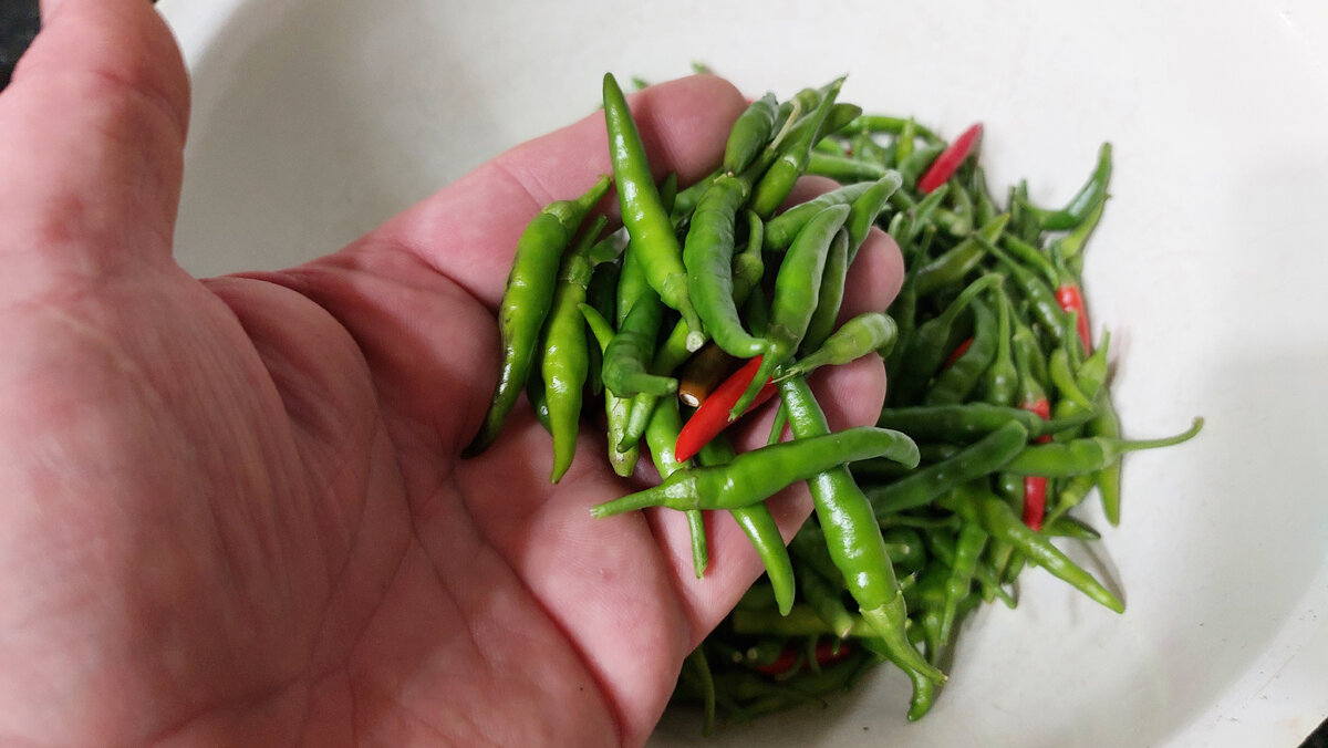Я очень большой любитель острой еды. Поэтому каждый год обязательно заготавливаю много различных острых закусок на зиму. Но вот в этом году, впервые увидел на рынке вот такой перец. Даже ролик снял, с просьбой подсказать, что за сорт. Так никто и не ответил. Продавец тоже не в курсе. Но это не важно. Важно, что перец очень острый, а значит мне точно пригодится. Решил просто его замариновать. Если и вам интересно как я мариную перец, приглашаю к себе на кухню, где расскажу и покажу, как я это делаю. ПОШАГОВЫЙ РЕЦЕПТ С ФОТО: Конечно же первым делом я перебрал перец от различных листочков и другого мусора. Сложил в миску и хорошо промыл. Затем залил перец кипятком и накрыл миску. Оставляю перец на 15 минут. Пока перец пропаривается, подготавливаю маринад. В кастрюлю выкладываю нарезанные кусочками 4 зубчика чеснока, 5-6 горошин душистого перца, два лавровых листа, 1 столовую ложку сахара и 1 чайную ложку соли. Влил 200 мл воды и поставил кастрюлю на плиту. После закипания оставляю провар