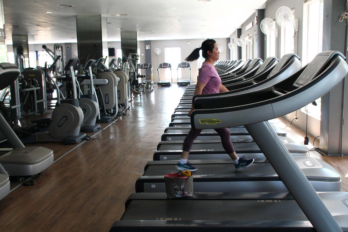 На втором этаже мне выдали номерок, два полотенца и шлепки. Первым делом я отправилась в спортзал на тренировку. Поскольку мне давно известно, над какими проблемными зонами моего тела мне надо работать, я определилась с комплексом упражнений.
