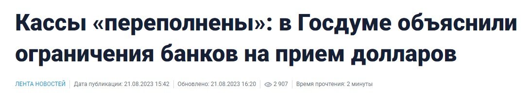 Глава комитета Госдумы по финансовому рынку Анатолий Аксаков в своем интервью рассказал, что кассы российских банков переполнены наличной валютой, ее просто некуда девать, поэтому банки и вводят огромные заградительные комиссии, ограничивающие прием валюты, либо вообще прекращают это делать. Казалось бы, ну вот и отлично! Теперь, получается, россияне, наконец, смогут как и раньше снимать со своих валютных счетов доллары и евро без принудительной конвертации в рубли? Ха! Не тут то было. Банк России продлевает все валютные ограничения еще на полгода, и судя по всему, будет продлевать их и далее, так что снять валюту со счетов все равно не получится. Тогда что же это за валютный парадокс такой получается? Кассы переполнены, у банков наличная валюта в избытке, они не знают, как от нее избавиться, а получить ее клиентам все равно нельзя, потому что ЦБ запрещает? На самом деле, "все не то, чем кажется". Во-первых, переполнены валютой кассы далеко не всех банков, а только тех, которые продолж
