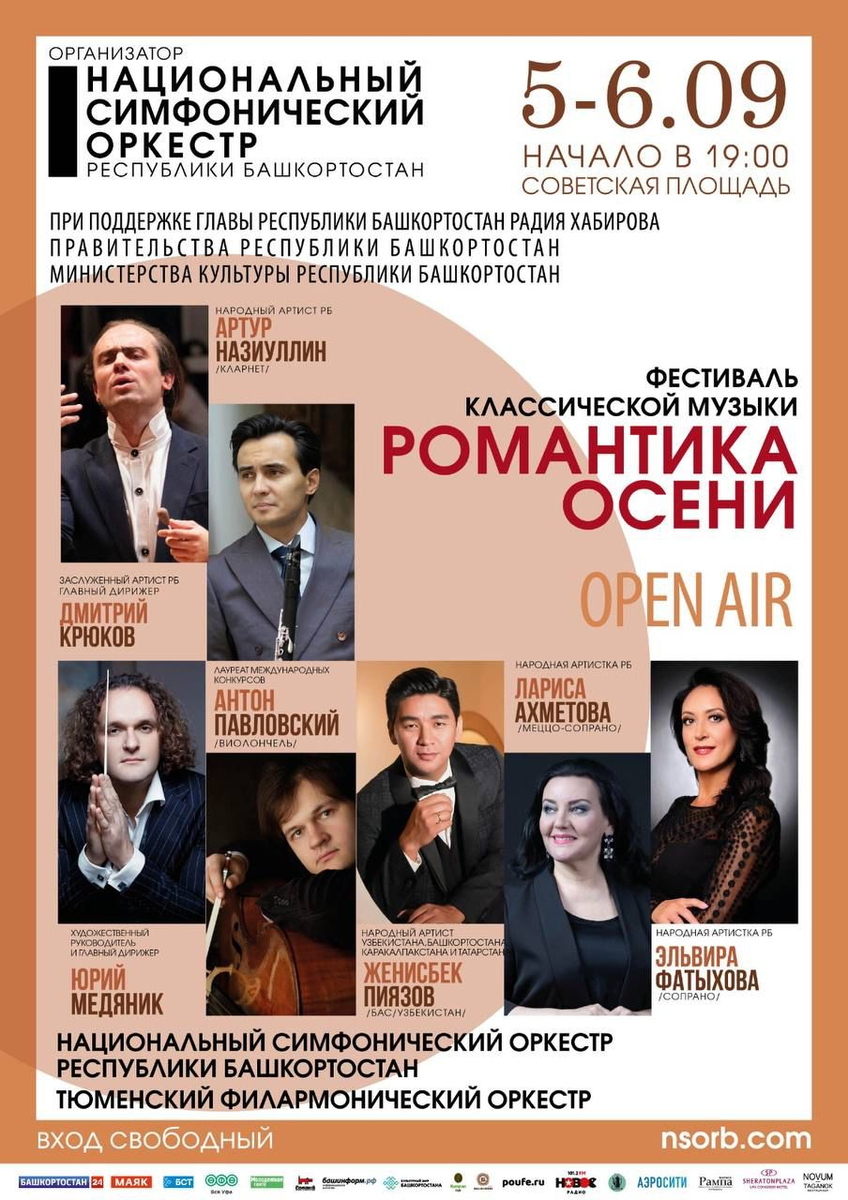 Артур Назиуллин, народный артист РБ, генеральный директор НСО РБ: «Дорогие друзья! СЕГОДНЯ - первый день Фестиваля "Романтика осени" на Советской площади! Приглашаю всех на потрясающий концерт Госоркестра Башкортостана под управлением Дмитри