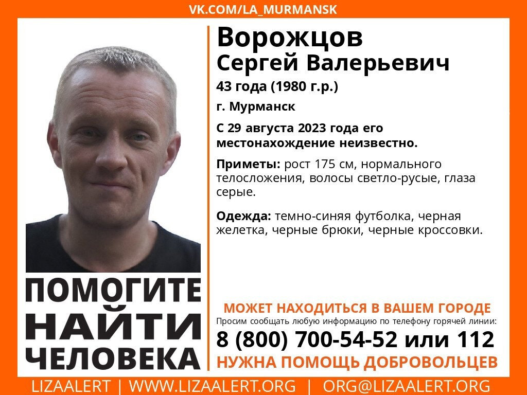 Всех имеющих информацию о местонахождении Сергея Ворожцова просят позвонить по телефону горячей линии 8 800 700-54-52 или по телефону 112.