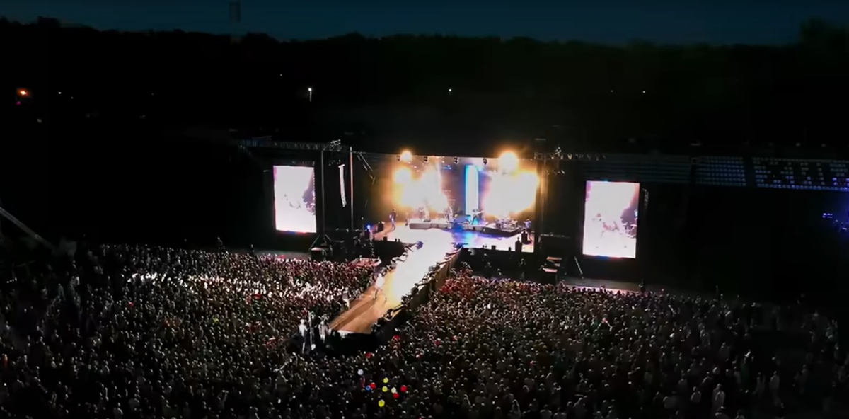 Хочу попробовать необычный формат статьи. Буду смотреть видео, которое вышло на официальном канале SHAMAN о его концерте в Новомосковске и комментировать со скринами. И прямо первое, что бросается в глаза — это масштабность. Сколько же было людей на этом концерте? Яблоку негде упасть. Конечно же клип сделан под песню «Я русский». Гимн народа, который оказался на перепутье и живёт в непростое время (впрочем, оно простым никогда не бывает). Но эта песня сплотила дух, её поют дети и взрослые, под неё идут в бой и ставят танцы, устраивают флешмобы — и всё это заслуга одной песни. Чего у Ярослава не отнять — он умеет делать шоу. Про вертолёт я знала, видела, как артист прилетает на нём и идёт к сцене. Выглядело мощно, завораживающе, чуток пафосно, но это даже хорошо — нам же нужно настроение, правда? Фирменный жест — и невероятной красоты костюм. Ярослав с каждым разом всё больше поражает находками в плане одежды. Но все они прекрасно работают на его сценический образ. Вы посмотрите на это
