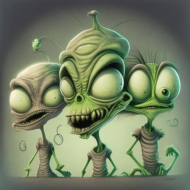 Задачей пришельцев-разведчиков, последних представителей вымирающей цивилизации одной из планет в созвездии Волосы Вероники, было в кратчайшие сроки определить способ избавления Земли, молодой и прекрасной планеты, изобилующей кислородом и водой, от недоразвитых двуногих аборигенов. - Вау! – сказал командор Дрисюсель, когда летающая миска приземлилась на окраине поселения землян. Это была команда отпочковаться друг от друга и десантировать на незнакомую территорию. Лунный свет серебрил сугробы. Астенические фигурки сине-фиолетовых, с трудом координируясь в полумраке и утопая в сугробах, крадучись подбирались к примитивному железобетонному строению, внутри которого ощущалась активная протоплазма и откуда неслись низкозвуковые завывания и ритмичный перезвон неизвестных инструментов. От холода синтетическая шерсть пришельцев, основательно побитая космической молью, встала дыбом, делая их похожими на голодных кошек с гипертрофированными головами, вставших на задние лапы. Заглянув сквозь ст