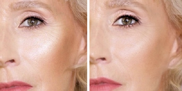 Даже самый деликатный хайлайтер, нанесенный поверх готового макияжа на область морщинок (например, на скулы, где отпечатались гусиные лапки, поверх арки Купидона, где уже зародились кисетные морщинки), только подчеркнет их.