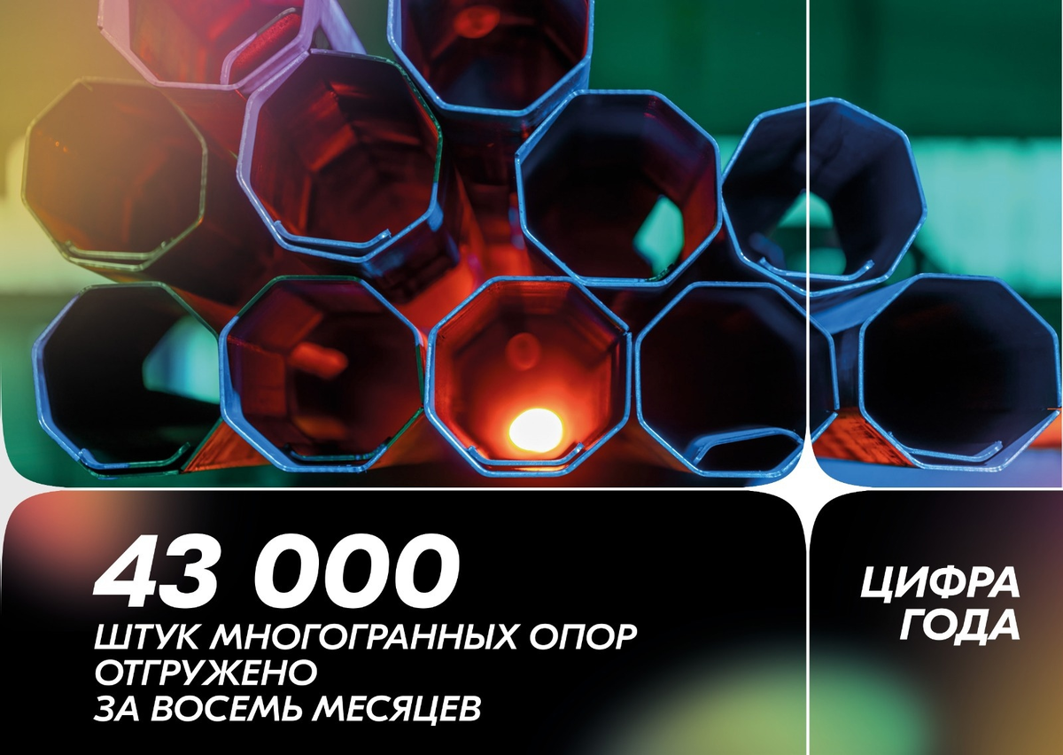 Константин Ставицкий, заместитель генерального директора по развитию обособленного производства рассказал, что отгрузка товарной продукции по сравнению с аналогичным периодом прошлого года выросла более чем вдвое и составила 43 000 штук многогранных опор.