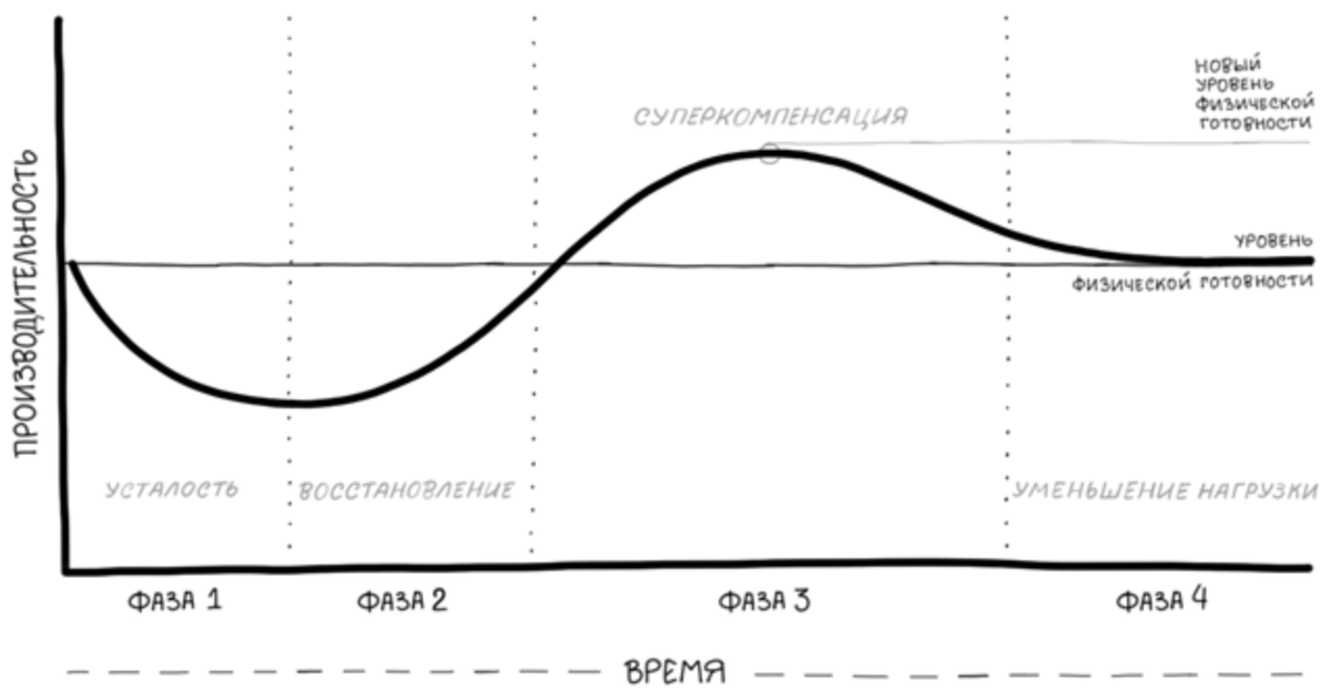 Подводка (или тейперинг) → это снижение тренировочной нагрузки перед гонкой, позволяющее уменьшить усталость и сохранить положительные эффекты от выполненных тренировок. Такой подход помогает выйти на уровень суперкомпенсации или пиковую форму.