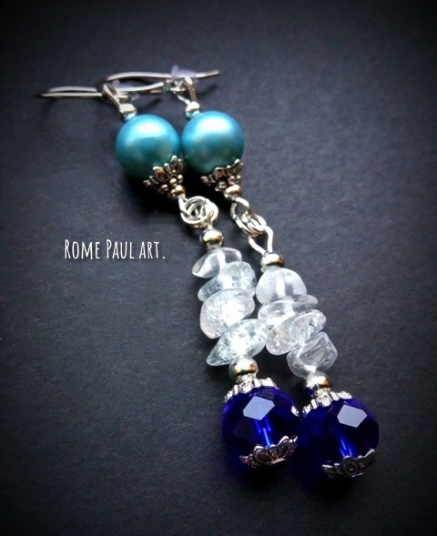 МАТЕРИАЛЫ: жемчуг Majorica (12 мм), кристаллы горного хрусталя, богемский хрусталь (8 мм), ювелирная сталь
