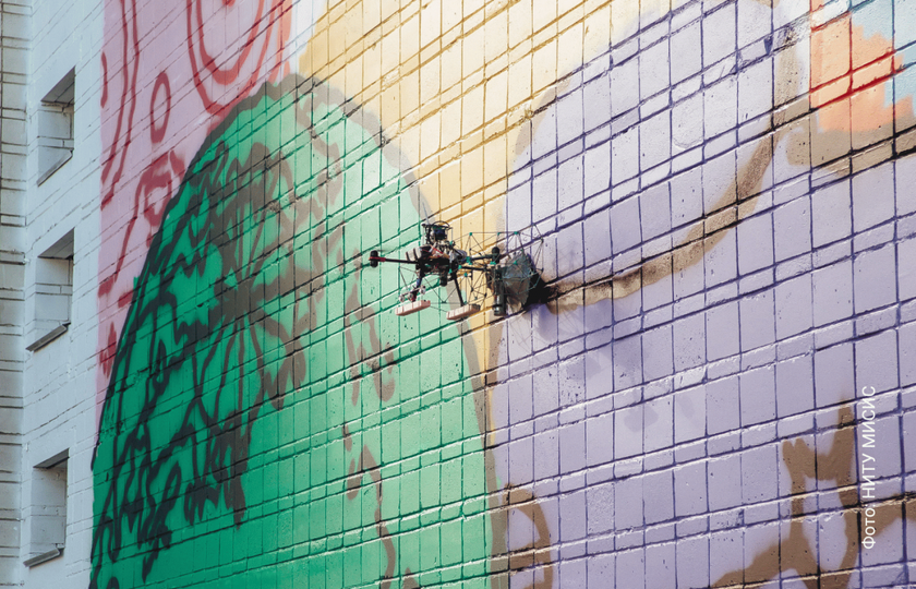 Учащиеся с нуля создали дрон и программу управления полетом с интерактивным интерфейсом. Также студентами была создана система позиционирования и программа обработки изображения для рисования в полете. Дрон получил камеру с инфракрасным фильтром, светодиоды и датчик LiDAR. Все это помогает беспилотнику понимать, где он сейчас находится. Система позволяет определять местоположение относительно холста (стены) с точностью до 1 см. Огромной настраиваемой кистью дрон может равномерно закрашивать поверхность и изменять толщину штриха. Первый работой дрона стал рисунок площадью более 300 квадратных метров на стенах корпуса НГТУ НЭТИ. Созданный дроном рисунок является самым большим муралом в России. Напомним, мурал — это изображение, нанесенное на стену здания или сооружения. Над картиной дрон работал 27 дней подряд. Теперь на корпусе университета есть картина, на которой дрон изобразил космос, роботов и ДНК. Представители вуза уточнили, что ранее дроны уже применялись для рисования, однако бе