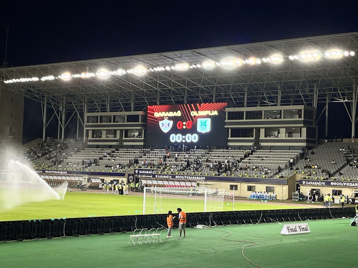 В последний день лета я улетела в солнечный Баку, где мне удалось посетить матч квалификации Лиги Европы между Карабахом и Олимпией из Любляны. Матч проходил на Республиканском стадионе им. Тофика Бахрамова. Тофик Бахрамов - советский, азербайджанский арбитр, который приобрел известность, засчитав гол, в финале Чемпионата мира 1996 года. Он был вторым советским судьей, судившим на чемпионатах мира по футболу и первым, судившим финалы Еврокубков. На этом стадионе Карабах проводит именно матчи Еврокубков. Стадион начали строить ещё в 1939 году, но из-за войны стройку пришлось остановить. В итоге, стадион был открыт в 1951 году, тогда он носил имя Сталина и был рассчитан на 45 тысяч зрителей. Стадион строили немецкие военнопленные. С высоты стадион напоминал по форме букву «С», что собственно и задумывалась в силу его названия в честь Сталина. После его смерти стадион полностью достроили, и он получил «О»-образную форму. И был переименован в честь Ленина. И только в 1993 году после смерти