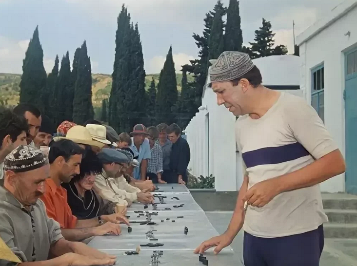 В кинокомедии "Кавказская пленница, или Новые приключения Шурика" есть эпизод, в котором герой Юрия Никулина проводит сеанс одновременной игры в домино. На этом сеансе присутствуют местные жители, которые захотели проверить свои силы в игре с "гроссмейстером". А давайте попробуем узнать некоторых любителей дворового домино. Мужчина в тюбетейке Тут сразу же и легко узнается Георгий Милляр. До этого он уже появлялся в кадре, сыграв гостеприимного хозяина с рогом. Волнующийся мужчина в кепке и очках Тут легко узнается один из сценаристов фильма Морис Слободской. Он написал много сценариев кинокомедий, но сам в кино появился лишь один раз. Мужчина в шляпе Это один из местных жителей - Николай Попов. Так указано во всех источниках, а потому поверим. Мощный мужчина в папахе Это тоже один из местных жителей. Зовут его Иван Иванченко. Так вот, он работал простым шофером, но попал в фильм благодаря своей мощной фигуре и силе. Всё дело в том, что он был дублером Евгения Моргунова, в ча