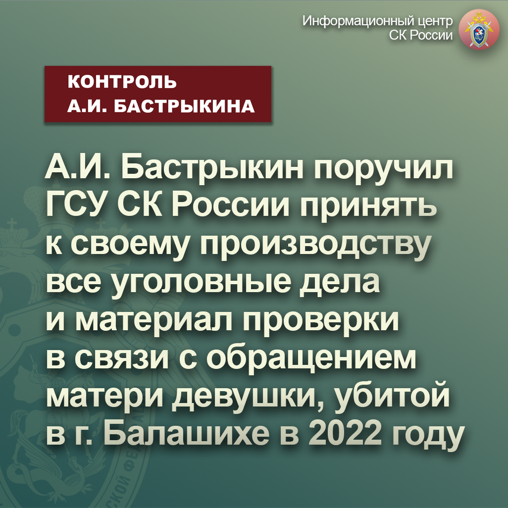 А.И. Бастрыкин поручил ГСУ СК России принять к своему производству все уголовные дела и материал проверки в связи с обращением матери девушки, убитой в г. Балашихе в 2022 году