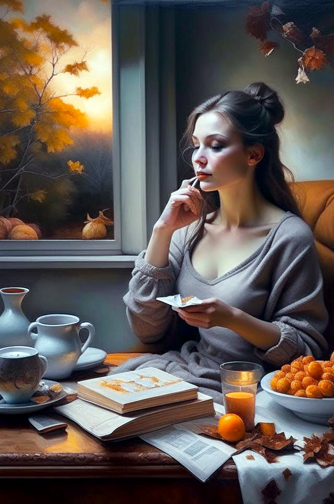 Продолжаем переходить на осенние настроение с нейросетью Kandinsky 2.2 Сентябрь. Усталая улыбка. Серый день и грустное утро, по вечерам чай и шоколад, а на десерт теплые воспоминания. Разбуди меня, когда кончится сентябрь. Сентябрь — прощальный поцелуй лета. Сентябрь — это кофе с корицей, кленовые листья, разноцветные, как часть детского рисунка, тёплые, нежные плюшки с ванилью и тонкий запах дыма. Сентябрь разбрызгал золото по кронам, листва пахнет терпким вином. Город очарован. Сентябрь... Я буду придумывать продолжение лета… в своей голове. Сентябрь — это возможность проснуться, когда на улице пасмурно. Это — возможность остро почувствовать уют. Заря из сада обдавала окна, кровавыми слезами сентября Сеет прохладу дождь мокрым серебром с приходом сентября. Золотом листопад осыпает всю страну. Дремлет осенний сад, словно ждёт весну. Подписывайтесь, у меня на канале много статей о рисунках от нейросети.