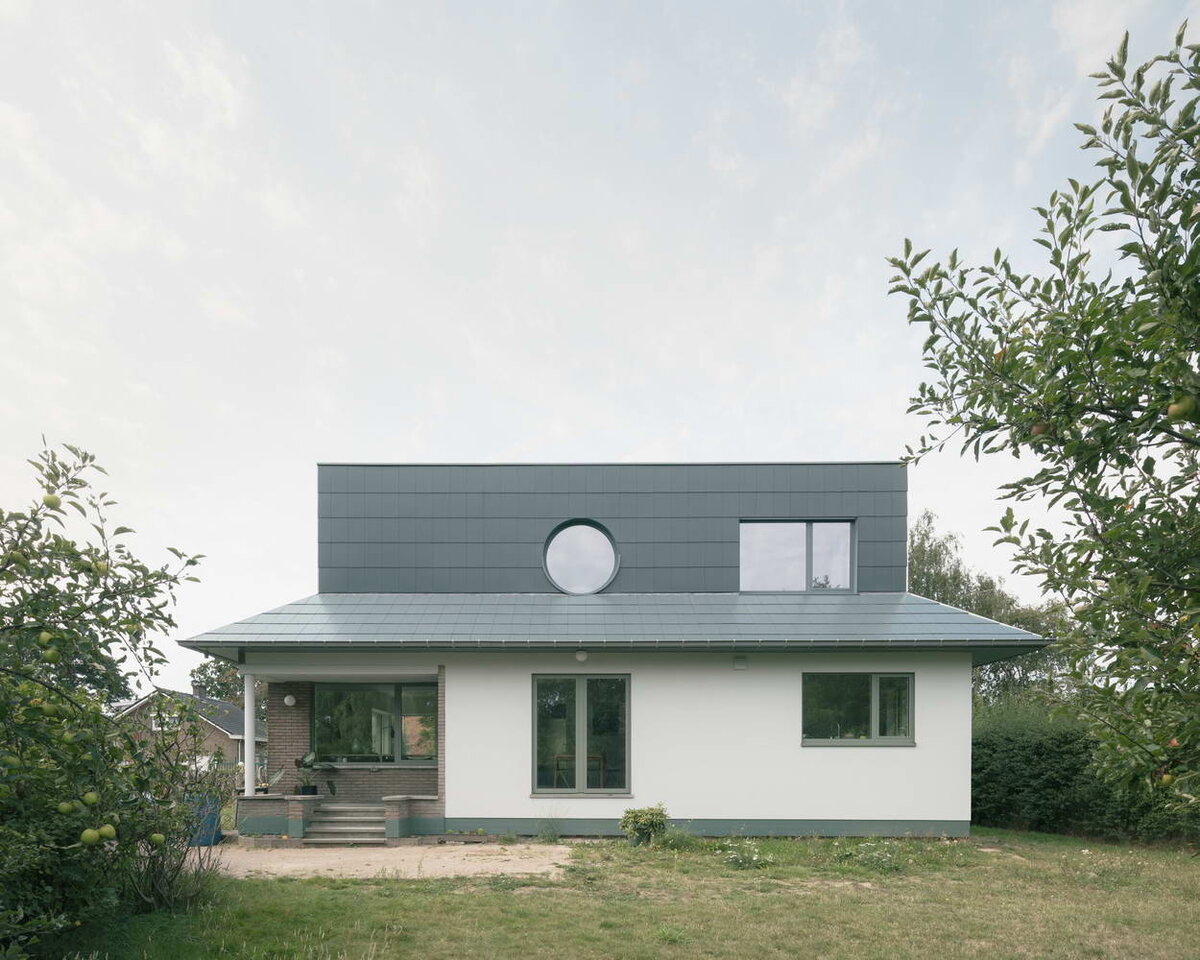 В этой реконфигурации бельгийская студия FELT расширяет отдельный дом на одну семью недалеко от Гента, добавляя второй этаж в форме шляпы поверх существующего бунгало шестидесятых годов. Новый второй этаж с ромбовидным центральным холлом вмещает три спальни и ванную комнату. На первом этаже жилые помещения соединены по диагонали. Обеденный зал двойной высоты со сводчатым потолком игриво связывает два этажа и наполняет светом самое сердце дома. Название: Дом в шляпе (A House With A Hat)