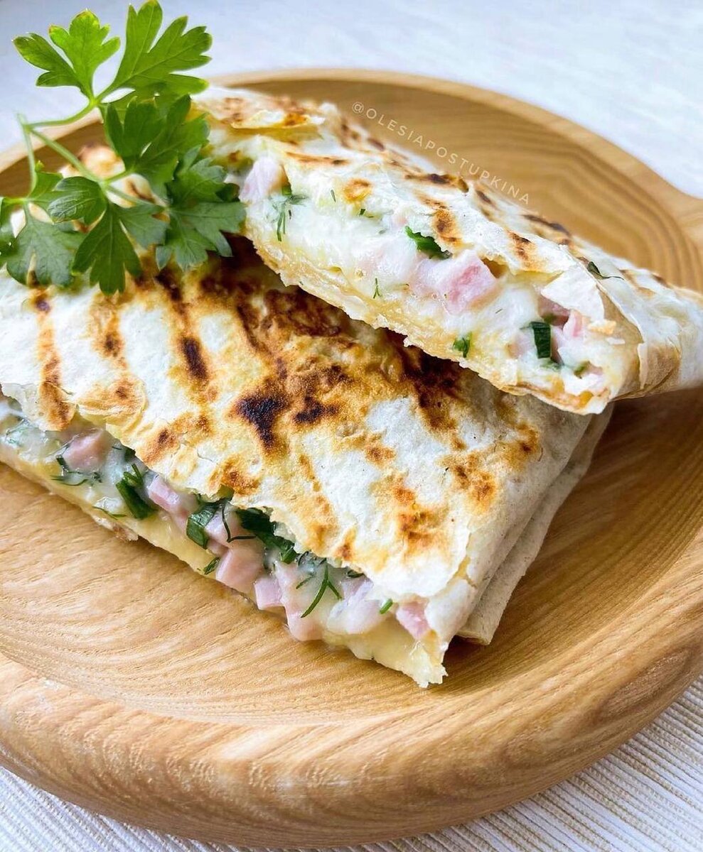 лаваш- 75 гр сыр сулугуни- 50 гр ветчина- 50 гр яйцо- 1 шт. зелень соль, перец ❗️Сначала обжариваем сторону с загибами, чтобы не пригорел лаваш и запеклось яйцо. Приятного аппетита.