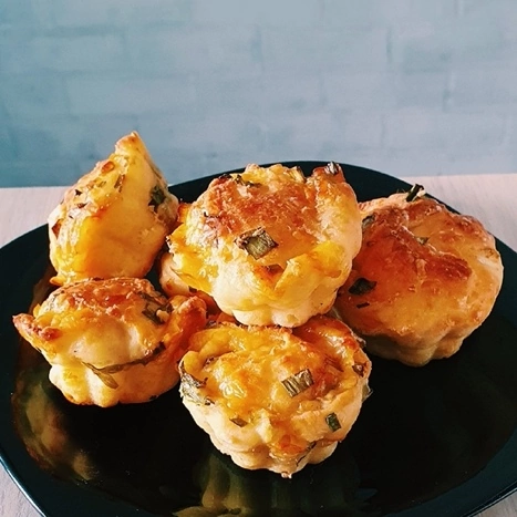 Рецепт: 2 яйца 1 белок 4 ст.л.творога 5% 4-5 ст.л.овсяных отрубей сыр Моцарелла~150 гр(натереть). По желанию,можете взять любой сыр зелень специи по вкусу Приготовление: Все ингредиенты смешать,должна получится густое тесто как сметана. Добавляем порезанную зелень В формочки выкладываем часть теста, потом сыр и сверху опять тесто. Запекаем в духовке 30 мин при 180 гр Приятного аппетита!