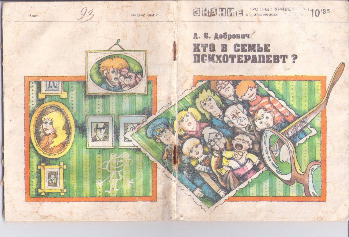 Попала ко мне в руки интересная книга «Кто в семье психотерапевт?» (1985 год). Автор — Анатолий Борисович Добрович, врач-психиатр, автор книг по психологии и психотерапии.