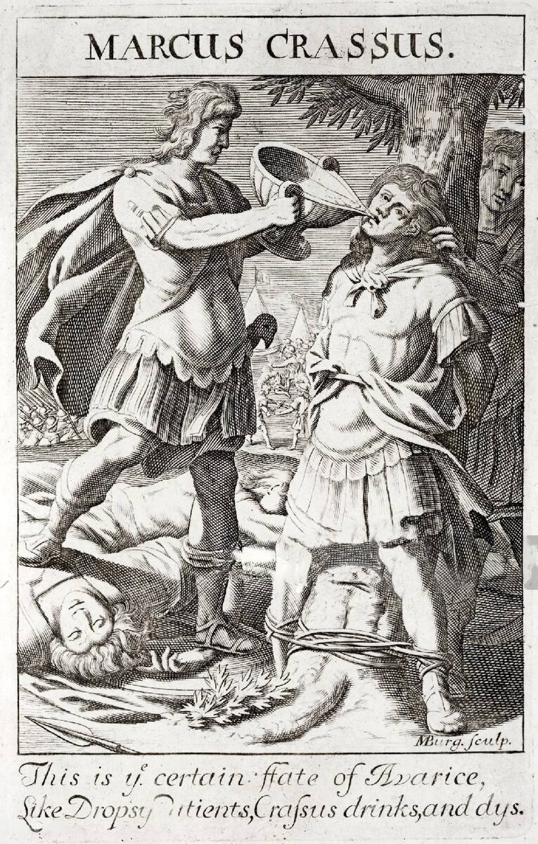 Согласно легенде, именно таким образом погиб один из богатейших людей за всю историю Римской Империи Марк Лициний Красс (115-53 гг до н.э.)