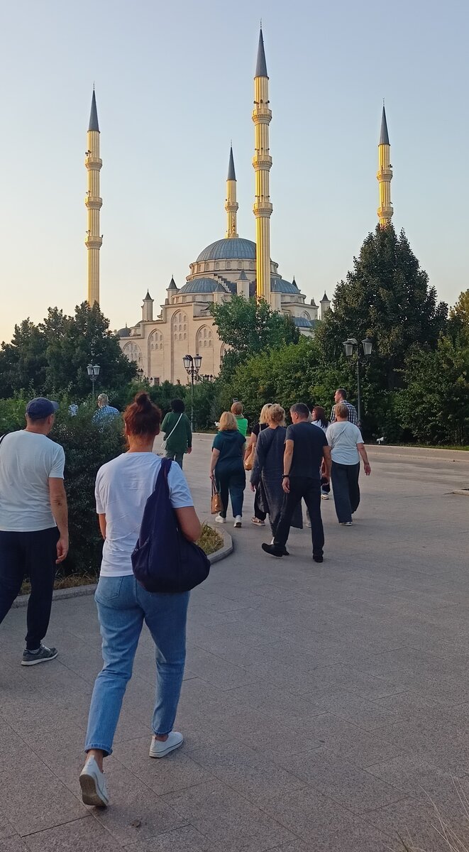 Приехать в Грозный и не увидеть «Сердце Чечни» просто нереально. Главная мечеть города – один из самых больших мусульманских храмов в России и Европе. 5000 квадратных метров! В ней может разместиться одновременно до 10 тысяч верующих. И столько же могут молиться в летней галерее и на площади, примыкающей к мечети. Эта махина была выстроена всего за два с небольшим года! Началось возведение в 2006-ом, а уже в 2008-ом мечеть имени Ахмата Кадырова распахнула свои двери для верующих. Выстроена она в классическом османском стиле. И очень напоминает Голубую мечеть в Стамбуле. Четыре величественных минарета «Сердца Чечни» взмывают ввысь аж на 63 метра! Стены снаружи и изнутри отделаны мрамором-травертином. Интерьер – белый мрамор. Ну а над центральным залом на высоте в 32 метра «парит» величественный купол. Дух захватывает! Расписывали мечеть мастера из Турции. Для написания узоров и аятов они использовали напыление из золота… Ну и специальная оговорка для девушек и женщин. По дресс-коду в