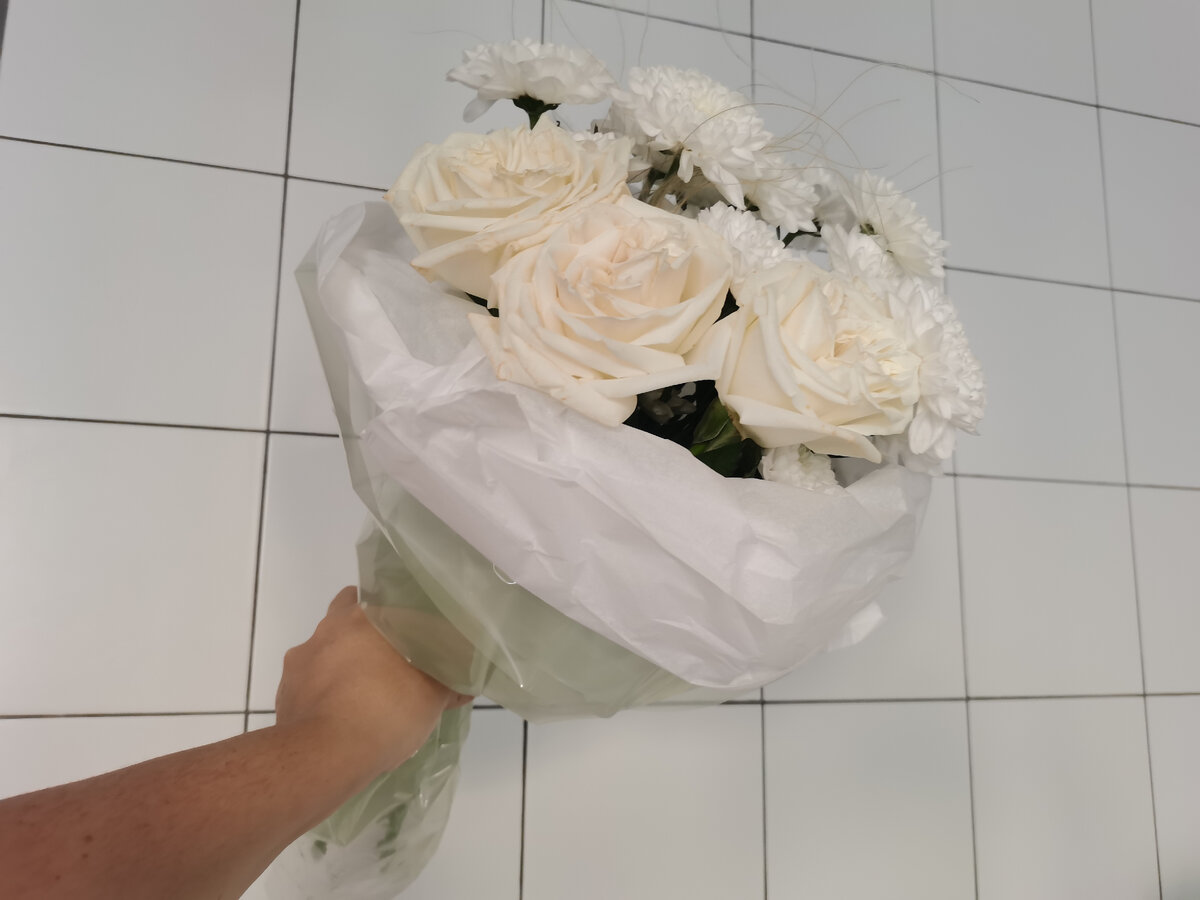 Подарили тут мне букетик - 3 розы, 3 хризантемы и немного ковыля или стифы (Stifa, лат. для флористов), ну и куча плёнки и бумаги. Рассказываю на его примере что и зачем надо проделать со всеми подарочными букетами. 1. Надо снять обертку. Бумага и плёнка, это подарочная упаковка. Она во-первых для транспортировки, во-вторых для доп. объёма, в-третьих для презентабельности букета. В упаковке букет оставлять не надо. Иногда под ней скрываются прелые листья, могут прятаться гнилые стебли. Всё это сократит жизнь цветка. 2. Если букет большой, качество цветов хорошее и есть подходящая ваза, то можно на этом этапе остановиться. Подрезать стебельки под углом 45° и поставить в прохладную чистую воду. Желательно чтобы уровень воды был до завязки. Внутри букета могут быть цветы с коротким стеблем и они завянут не достав до воды. 3. Если букетик маленький, цветы в букете сломаны или есть гнилые, то надо букет перебрать. Надо убрать листья, чтобы они не испаряли воду и продлить таким