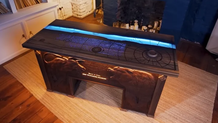Мастера из российской компании "Лихой ТопорЪ" представили уникальное мебельное изделие — криптостол с интегрированными секретными опциями. Этот стол, стоимость которого составляет 1 млн рублей, обладает сканером отпечатка пальцев, активирующим разнообразные функции, включая "летающую" платформу и светодиодное полотно с актуальным курсом криптовалюты. Интересный дизайн стола, вдохновленный стилем арт-деко, дополнен авторскими гравировками и искусственно созданными потертостями, придающими изделию эффект старины. Рельефные изображения Икара и "криптошахтера" символизируют стремление к достижению высот и поиску новых возможностей. Особенность стола заключается в подвижных модулях. Механизмы с магнитами создают иллюзию парящей платформы, под которой скрыто специальное место для хранения ключ-флешки от криптокошелька. Сканирование отпечатка пальца активирует механизм, выдвигающий платформу и позволяющий удивительным образом извлечь флешку. Помимо этой опции, стол также обладает другими секр