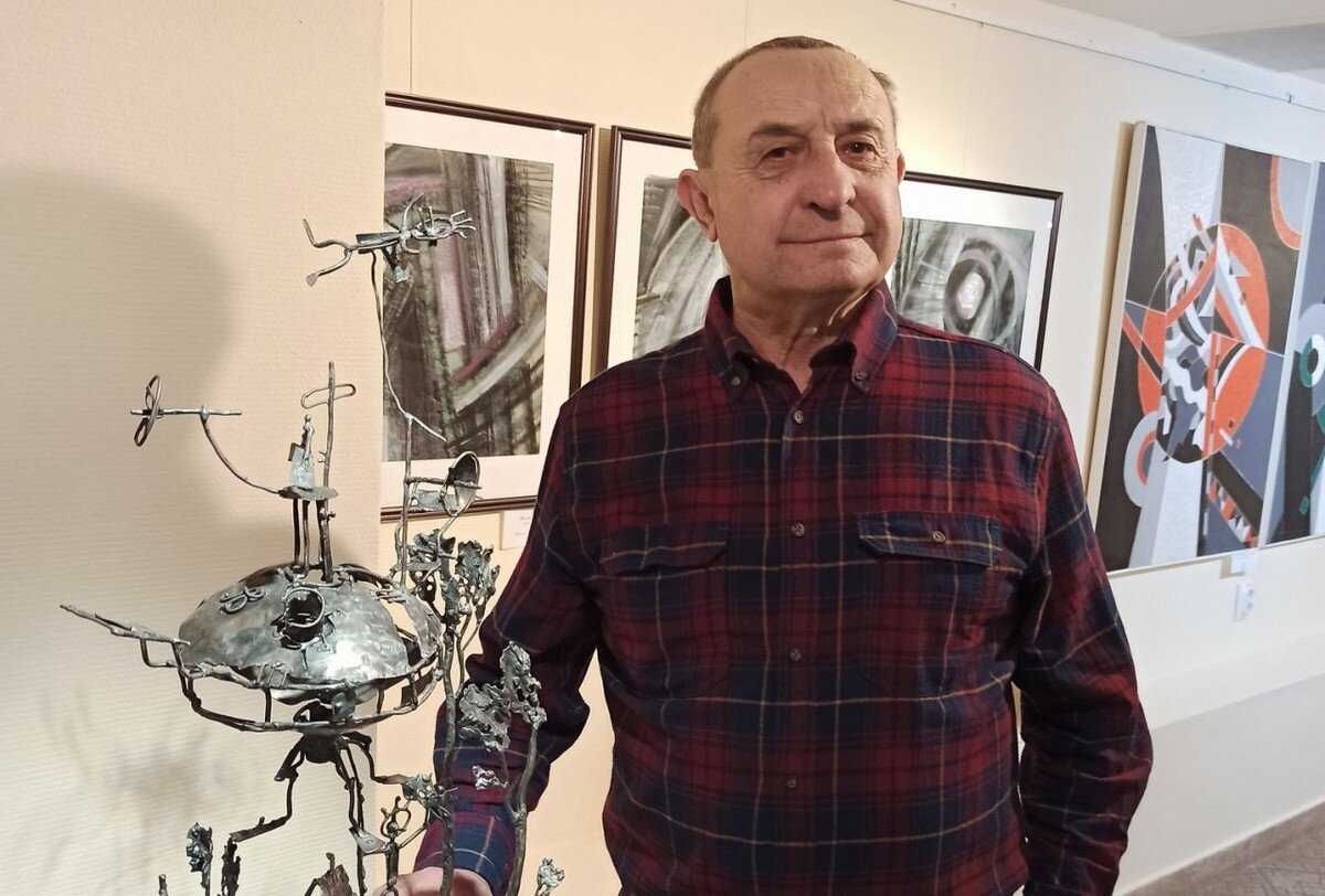 Выставку Андрей Волков назвал «Лирическая металлографика». Лиризм – в каждой работе, а ещё и юмор. К окружающему миру автор относится иронично.