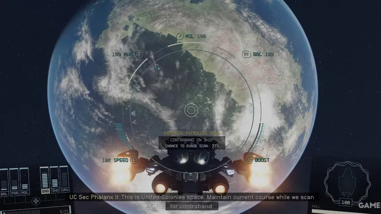 HUD укажет на вероятность прохождения сканирования, когда контрабанда хранится в защищенном отсеке. Благодаря использованию защищенного отсека и минимальному количеству контрабанды вероятность достижения успеха в игре составляет 59%. Внедрите следующие подходы, чтобы повысить шансы на успех: