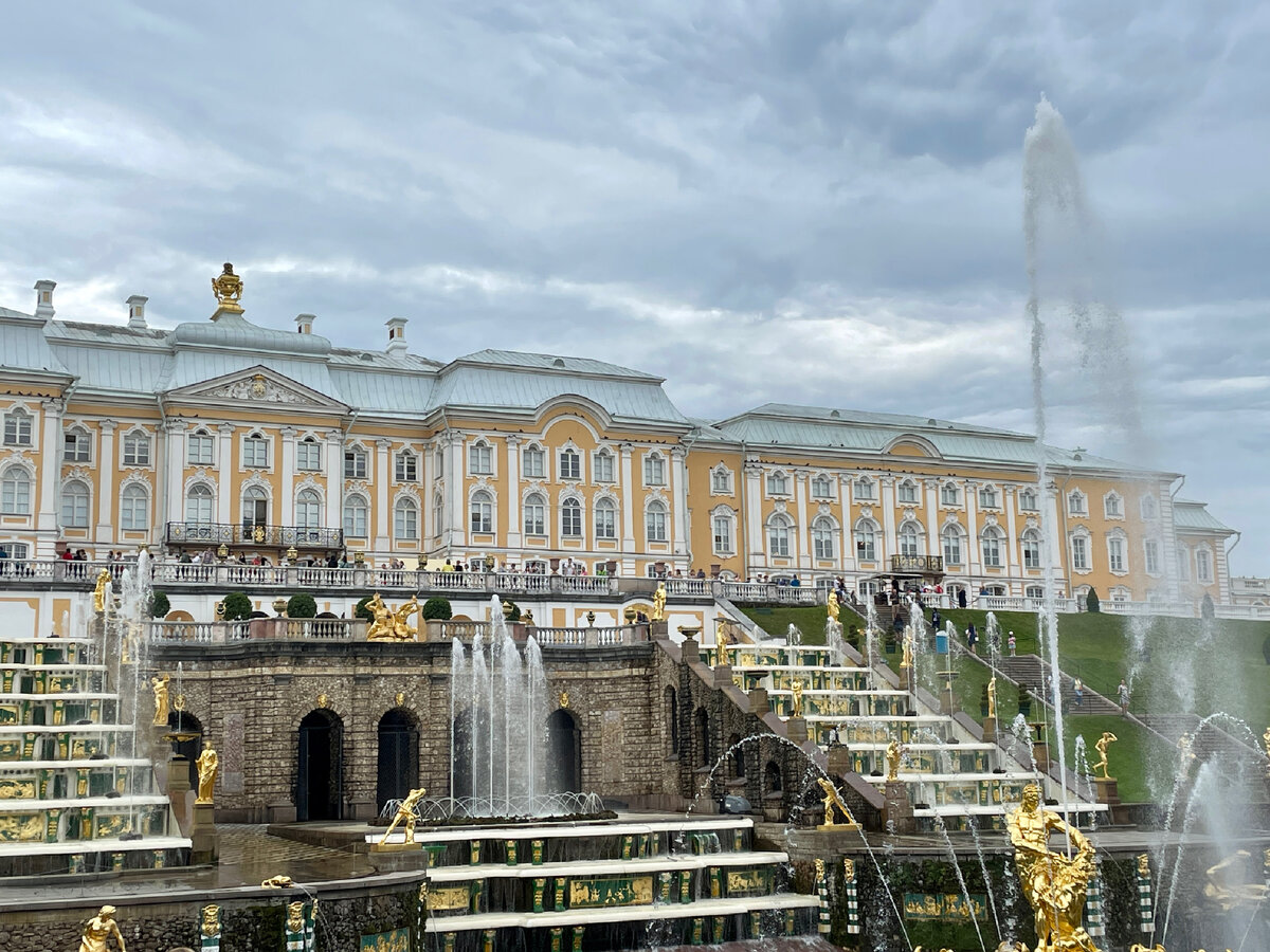 В Петергоф я ездила этим летом уже не в первый раз, но туда хочется возвращаться снова и снова, очень уж там красиво! В эту поездку я учла все нюансы, чтобы она получилась и познавательной, и комфортной. Предварительно я позвонила в экскурсионное бюро Петергофа, там меня записали на индивидуальную экскурсию по нижнему парку фонтанов на 11:00, стоимость такой экскурсии 2000 руб. Выехала из отеля я на такси в 9:30, ехать примерно 1:10, по стоимости вышло около 1200 руб. Добравшись до Петергофа, я купила входной билет - 600 руб., встретилась с экскурсоводом и началась экскурсия, продолжительность - 1,5 ч. Рассказывают про все основные фонтаны, историю их создания, смысл и легенды. Очень интересно! Первый раз я была в Петергофе без экскурсии, можно просто получить эстетическое удовольствие, но ничего так не узнать, поэтому рекомендую обязательно брать экскурсовода. Если вы приедете к открытию парка, то избежите огромных очередей, потому что после экскурсии, около 13:00, уже было очень