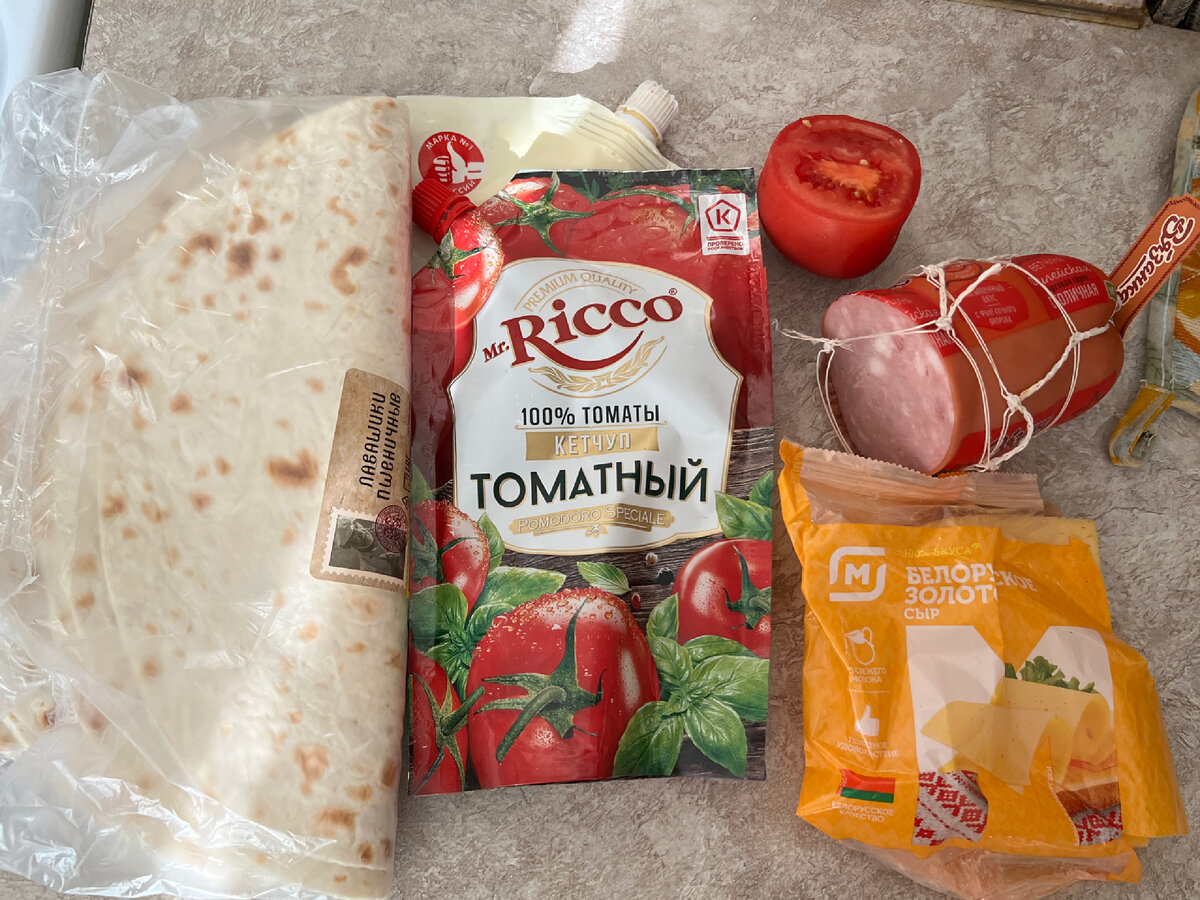 Нам потребуется: Готовим начинку: нарезаем тонкими ломтиками колбасу и помидор, сыр натираем на терке. Затем смазываем лавашик майонезом и кетчупом и раскладываем начинку ровно на половину. И обжариваем на сухой сковороде с двух сторон до расплавления сыра. Готовый лавашик для удобства можно разрезать пополам. bon appetit 😋