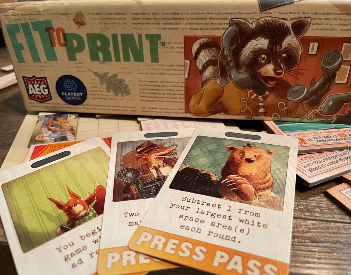 Тема у «Срочно в номер» — прямо под стать задачам в игре, и это очень подкупает: первую часть раунда вы набираете материалы для своей газеты (фотографии, статьи, рекламные объявления), а потом должны их грамотно расставить, избегая повторений и размещая фотографии рядом с подходящими статьями.