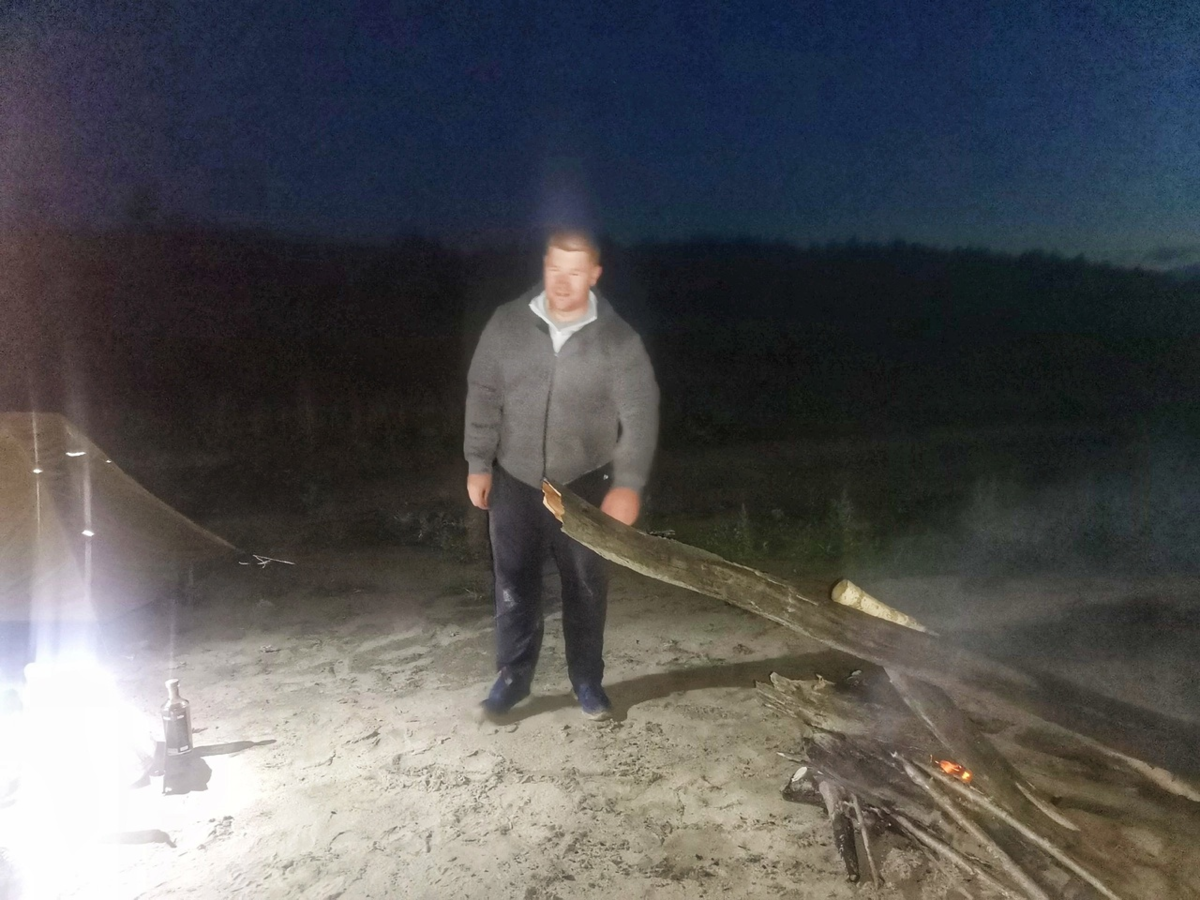 Условия складывались таким образом, что рыбалка планипровалась именно такая, в два этапа: заезд с ночевкой и день рыбалки. Как выяснилось, организация комфорта меня немного подбешивала, палатка, горячее питание, сбор и перетаскивание всего этого "лишнего" шмурдяка. Приехали, стаскали все в лодки, увезли на остров, расположились. Думаю, что в одно лицо я бы просто взял 5 литров энергетика, пол кило сала и булку хлеба, а спал бы в лодке. Но мы все сделали культурно, хотя спать я пошел в лодку. В принципе, спать в лодке не плохо, но надувное дно лучше приспустить, так мягче. Не считая прохладной сентябрьской ночи было еще 2 фактора, это всплески рыбы и во втором часу ночи прилетели две птички, размером с воробья, в темноте они казались черными. Одна села на лодку, но увидев меня спрыгнула на берег, вторая почему-то нырнула в воду.
