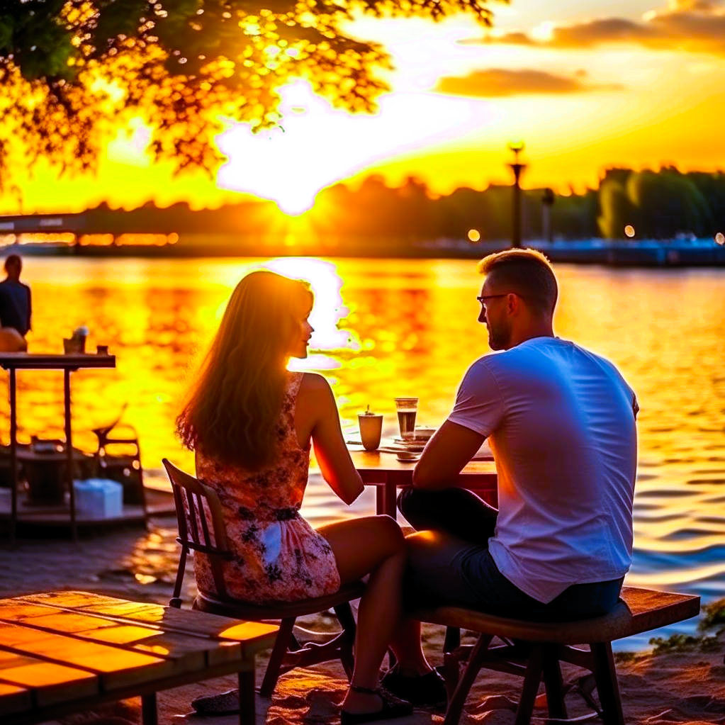 В таком прекрасном и дорогом кафе раньше девушка никогда не была - место для романтических свиданий. Начинало смеркаться, вода в реке посинела, зажглись огни ночного города. У Аллы дух захватило от такой красоты!