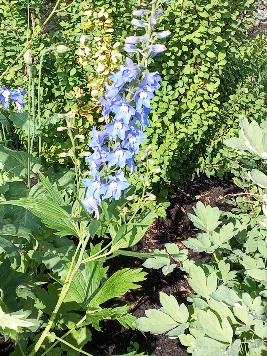 Другой пакетик с семенами дельфиниума "Летнее небо" показало себя, как есть. Голубые цветочки на тоненьком стебельке.
