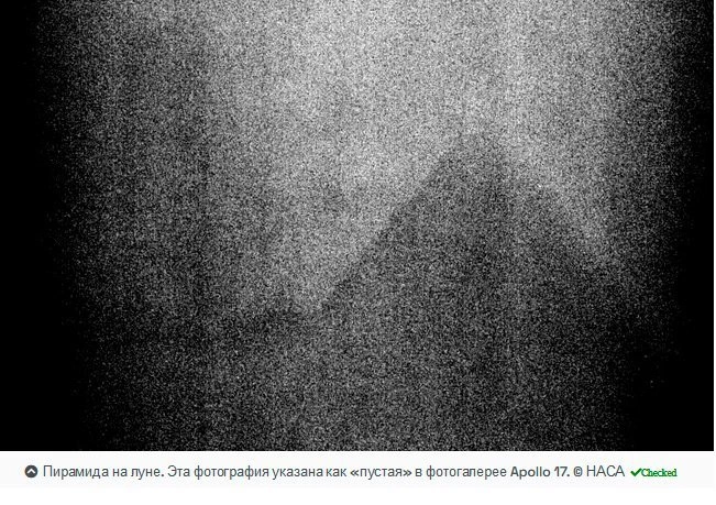 🌕 Пирамида на луне. Эта фотография указана как «пустая» в фотогалерее Apollo 17. © НАСА Эта фотография была сделана Аполлоном-17 возле скалы Геофон во время последнего полета на Луну, и она была отмечена как «пустая» в индексе фотографий Аполлона-17. Фотография определенно страдает от чрезмерного освещения и проблем с шумом. Но на самом деле он не совсем пустой, так как регулировка контраста показывает пирамидальные структуры.