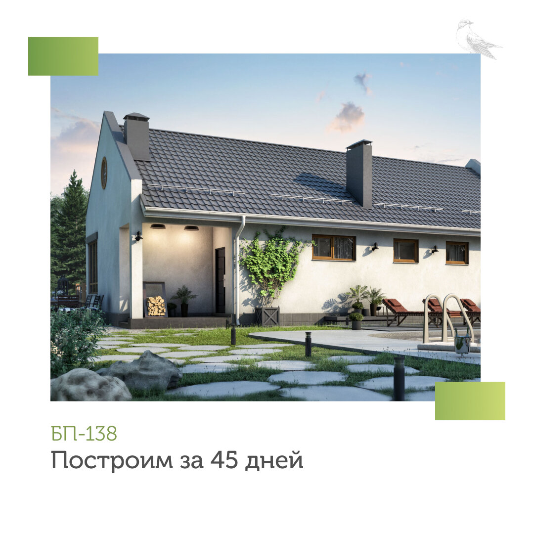 ⭐ Одноэтажный дом БП-138 Думаете, что строительство загородного дома – это долго? Спешим доказать вам обратное! Технология БЭНПАН, по которой возводятся все дома в нашем жилом комплексе, позволяет возводить капитальные жилые дома в максимально короткие сроки 🙌 Например, дом по проекту БП-138 может быть построен всего за 45 дней. И за этот срок будет возведена не просто коробка дома, а дом в комплектации «Тёплый контур»: ◼️ фундамент; ◼️ коробка дома из панелей БЭНПАН+; ◼️ входная утепленная дверь; ◼️ утеплённая кровля; ◼️ окна ПВХ. На этапе строительства в дом заводятся: ◼️ электричество; ◼️ канализация; ◼️ водопровод. Вместе с домом вы также покупаете земельный участок с обустроенным парковочным местом и ограждением по периметру. К участку подведены газопровод и интернет. Дом БП-138 имеет общую площадь более 115 кв. метров и состоит из: ✔️ гостиной с выходом на патио; ✔️ кухня-столовой с кладовой; ✔️ 3 спален; ✔️ 2 санузлов; ✔️ холла; ✔️ теплогенераторной. В таком доме будет комфорт