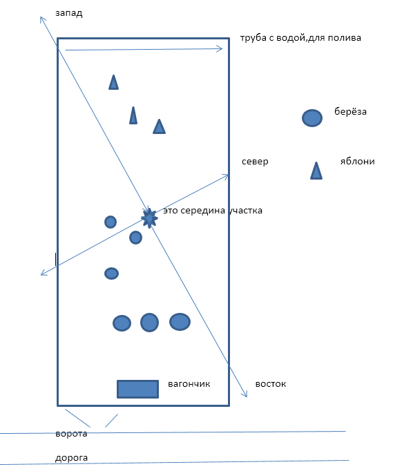 Для начала скажу, что мой участок ниже дороги примерно на 20 см, получается весь участок нужно «поднять»??? я просчитала , что бы поднять участок на эти самые 20 см мне понадобится 120 м3 земли, в 1 куб.метре грунта примерно 1450 кг или 1,45 т (у нас в городе продают тоннами), это 174 т, по данным авито -1100 руб/т, и получается офигительная циферь - грубо, в 192 000 рублей. Я, честно, ошалела, немного поскорбела по уплывшему от меня чернозёму и решила искать другой выход. Мой участок прямоугольной формы, размерами: планируя свой участок я записала что я хочу: 1) дачный дом, именно дачный, чтоб в нем можно было комфортно находиться до октября-ноября.(какой? размеры, из чего, подводка электричества, освещение участка зонами, освещение дорожек, да и сами дорожки) 2) баня( место для дров, летний предбанник или что-то типа верандочки небольшой) 3) хозяйствено-бытовые постройки,а именно туалет (типа сортир )летний душ, место для хранения инвентаря и пр. Хотя сейчас роль кладовки исполняет с
