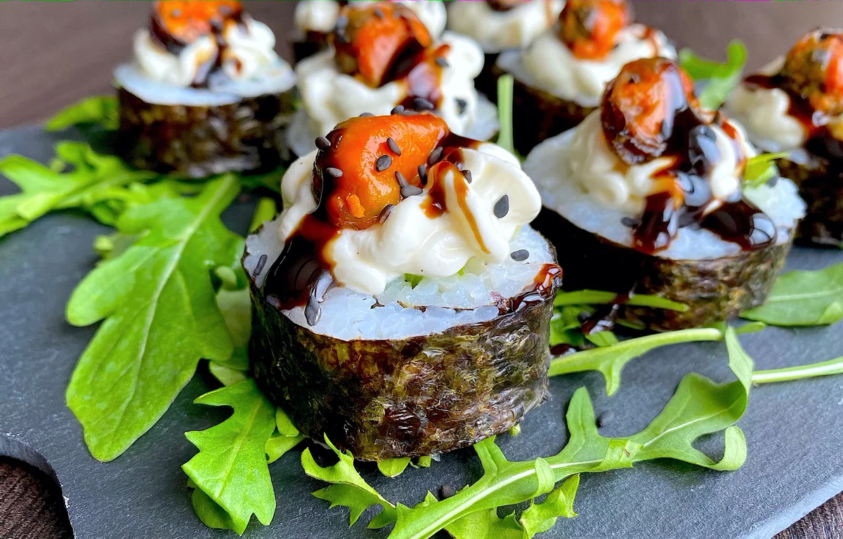 - Сбрызнуть соусом унаги, посыпать кунжутом.