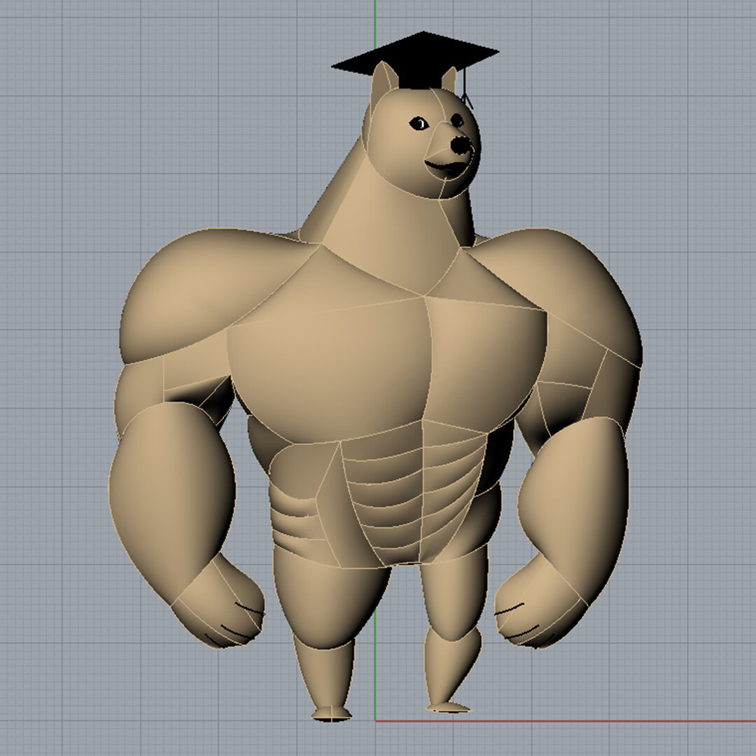 Вот такой получился Качок Доге. Все основные группы мышц или же части тела, которые отчетливо выделяются на фоне друг друга следует набивать отдельно, для придания большей фактурности. В каждое сочлененье я добавил перегородки, которые будут разграничивать внутренние объемы и не позволят набивке переползать из одной части тела в другую. Те небольшие детали, которые можно объединить - превратятся в детали большего размера. Где не получится совместить их без видимых потерь, сделаю вытачки. И только там, где уже никак нельзя добиться более-менее гладкого слияния будут отдельные детали, например, на тех же икрах или плечах. Когти договорились вышить прямыми полосками, без всяких утяжек. Конфедератка, которая обязательно должна присутствовать на голове куклы (к слову я до последнего момента не представлял себе, как именно я буду ее шить) конфликтует с ушами. Расстояние между ушками было 3,5 см, а диаметр околыша - 6 см. Можно было сдвинуть головной убор на затылок, но заказчик предложил сде