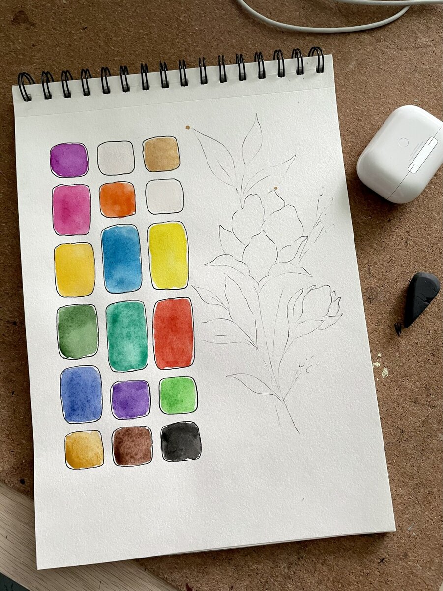 На прошлой неделе я купила детскую акварель на тест. Сделала выкраску, немного подумала и решила что к выкраске нужен рисунок. Взяла из папки с сохранённками эскиз черно белой тату. Да, он был нарисован другим художником, но иногда у меня руки чешуца что нибудь «раскрасить». В общем я быстренько в общих чертах сделала набросок, лайн и перешла к покрасу Не знаю какой черт меня дернул взять бумагу, которая мне не нравится, но как говорится "назвался груздем - страдай!". И если бумага была первой ошибкой, то работа с "референсом" стала второй ошибкой, лучше бы я рисовала с фотки цветка. Из-за того что изначально было непонятно где тень, где свет, какой объём и тд я оказалась в ж…е и начала работать наугад. В итоге я кое как справилась с основными заливками и пошла тонкой кистью прорабатывать детали. Бумага вела себя как сучька и нижний слой акварели просто размывалась от любого прикосновения кистью. С детализацией тоже было ничего не понятно, так что я продолжила рисовать по принципу "я