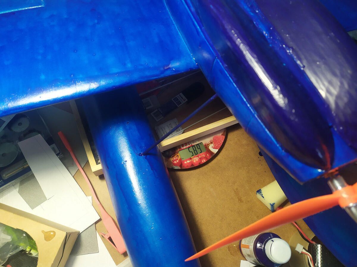 При первых же испытаниях выяснилось, что модель получилась тяжёлой. Основной причиной утяжеления, по моему мнению, стали PLA детали. Поэтому облегчение решил начать с крышки батарейного отсека. Обтекатели двигателей полые, с толщиной стенки в 1мм. Тем не менее весят они катастрофически много, относительно самой крышки. С начала хотел оставить вовсе без этой бутафории, но потом решил сделать из пеноплекса. Дальше под облегчение попали нос и корма поплавка, они тоже из этого пластика, но корма и вовсе цельная. В замен них тоже сделал из пеноплекса. Не так ровно, зато в массе сэкономили. Финальным штрихом удалил часть внутренней рамы. Таким образом удалось скинуть с модели 60 грамм, что конечно не плохо, но всё равно маловато. Итак, время новых испытаний.
