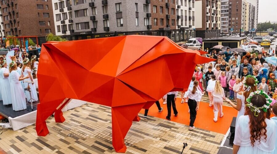 Скульптура красного быка украсила Севильский бульвар в ЖК «Испанские кварталы» от ГК «А101»