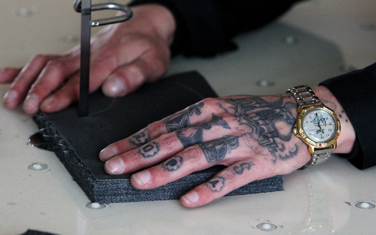 Зеки всегда накалывали рисунки на руках. Потом, в нашем случае, в 90х, татуировка перестанет быть какой-то важной атрибутикой только зеков.