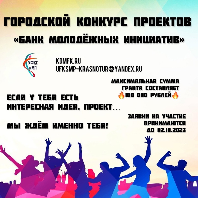 Заявки на участие в конкурсе принимаются до 02.10.2023 на электронную почту: ufksmp-krasnotur@yandex.ru или в 401, 402 кабинетах Администрации городского округа Краснотурьинск (ул. Молодежная, 1).