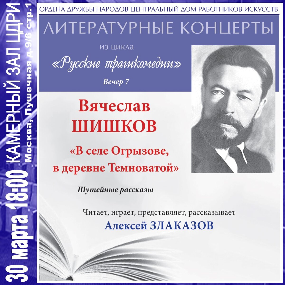 тел./касса: 8(495)624-9347 #литературныйконцерт #АлексейЗлаказов #литературныйвечер #литературнаяафиша #ВячеславШишков #интересноевмоскве #афишамосква #цдри #афиша #москваафиша